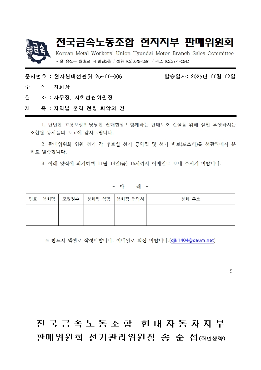 [¼±°üÀ§ °ø¹®]Áöȸº° ºÐȸ ÇöȲ ÆÄ¾ÇÀÇ °Ç