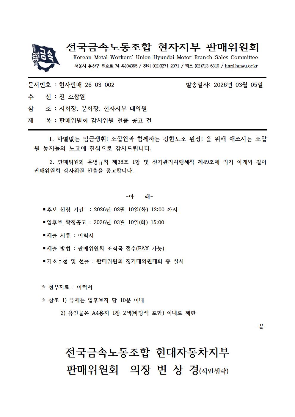 [°ø¹®] ÆÇ¸ÅÀ§¿øÈ¸ °¨»çÀ§¿ø ¼±Ãâ °ø°íÀÇ °Ç