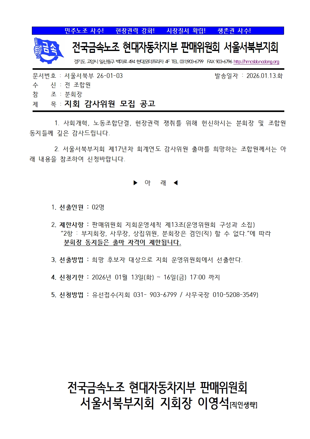 °ø¹®26-01-03] Áöȸ °¨»çÀ§¿ø ¸ðÁý °ø°í