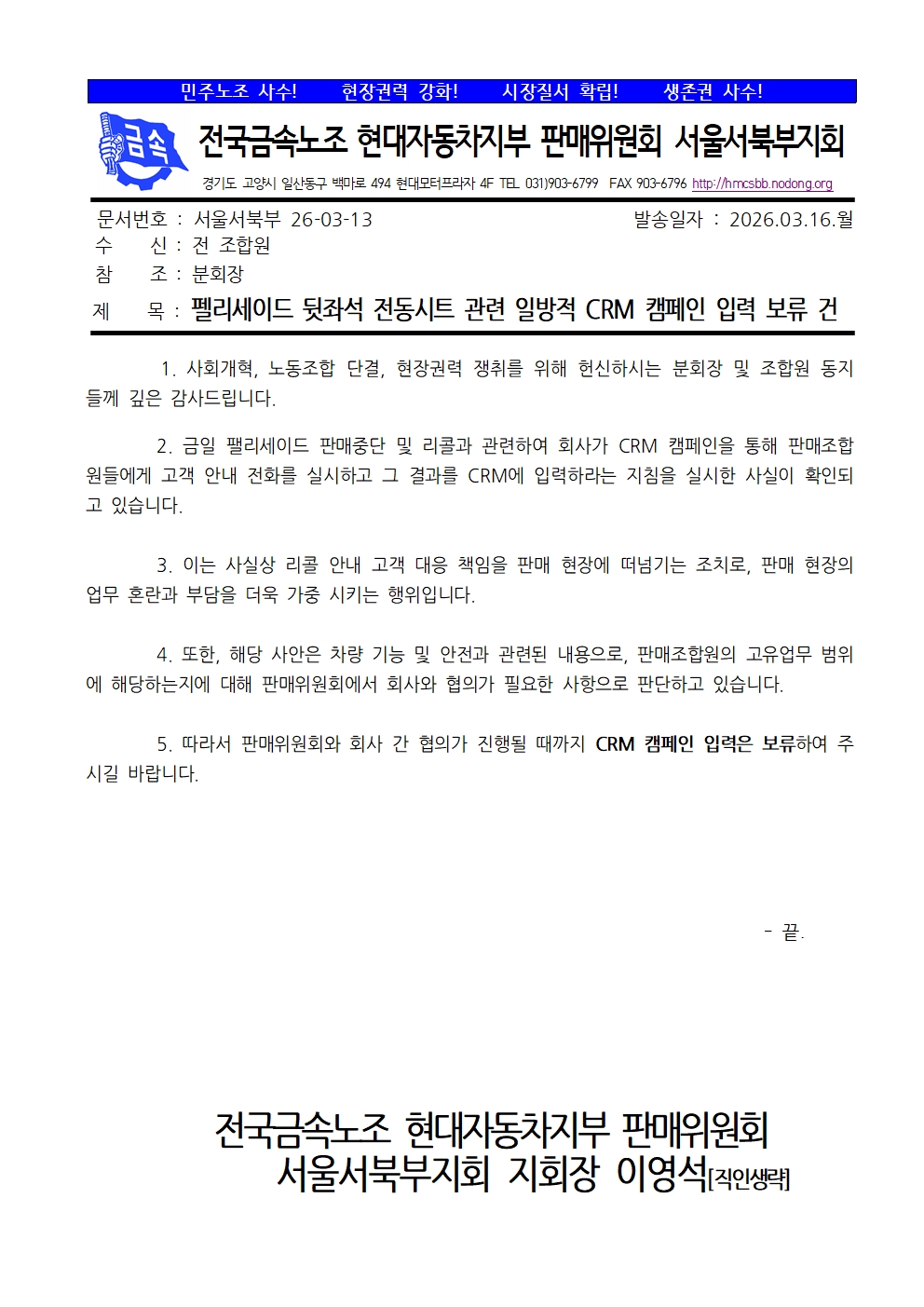 No Copyright, Just Copyleft! Àü±¹±Ý¼Ó³ëµ¿Á¶ÇÕ Çö´ëÀÚµ¿Â÷ÁöºÎ ÆÇ¸ÅÀ§¿øÈ¸ ¼¿ï¼ºÏºÎÁöȸ