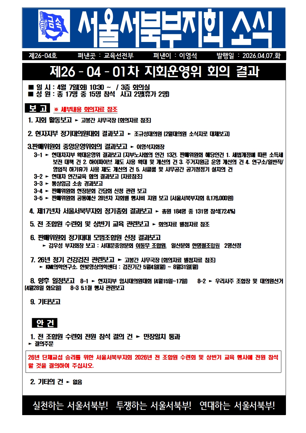 ¼Ò½Ä26-04] Á¦26-04-01Â÷ Áöȸ¿î¿µÀ§ ȸÀÇ °á°ú