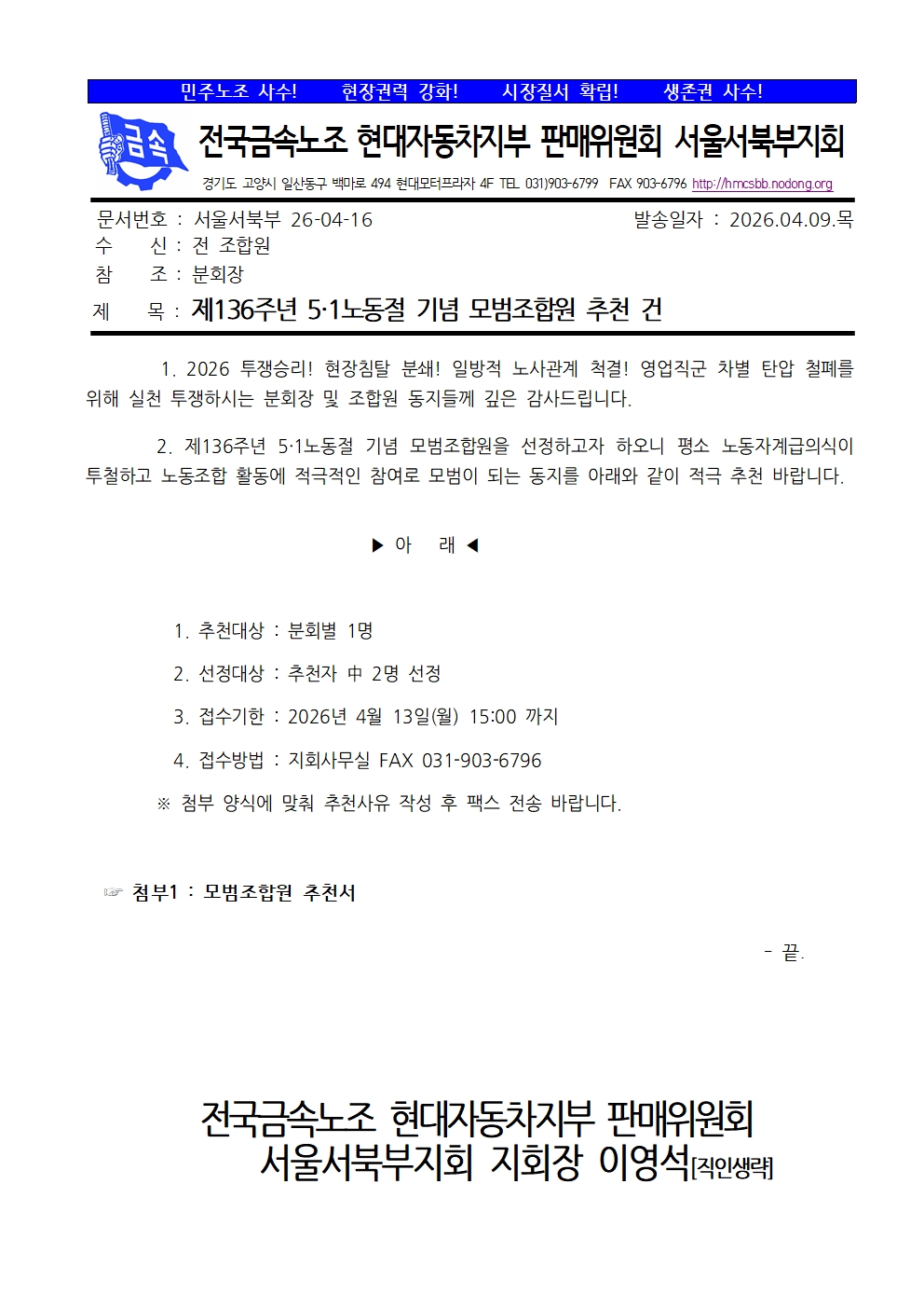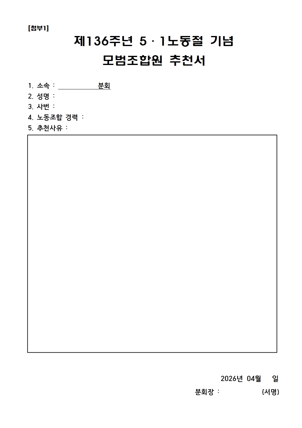 °ø¹®26-04-16] Á¦136ÁÖ³â 5¡¤1³ëµ¿Àý ±â³ä ¸ð¹üÁ¶ÇÕ¿ø Ãßõ °Ç