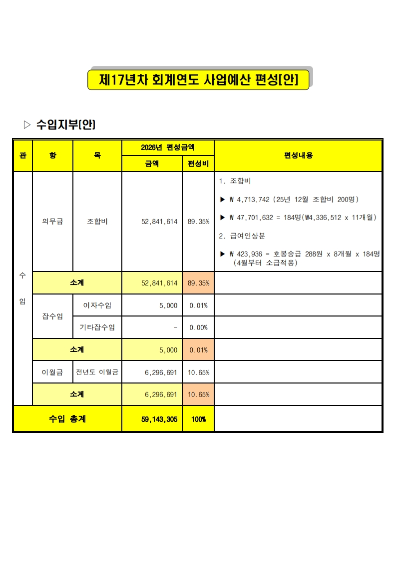[°øÁö] 2026³â Á¶ÇÕºñ ¼öÀÔÁöºÎ/ÁöÃ⿹»ê¾È